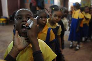 Governor of Western Bahr El Ghazal State Gen. Mark Nypouch placed two drops of liquid in a child's mouth as he launched the third polio immunization campaign in Wau on 24 March. Governor of Western Bahr El Ghazal State Gen…