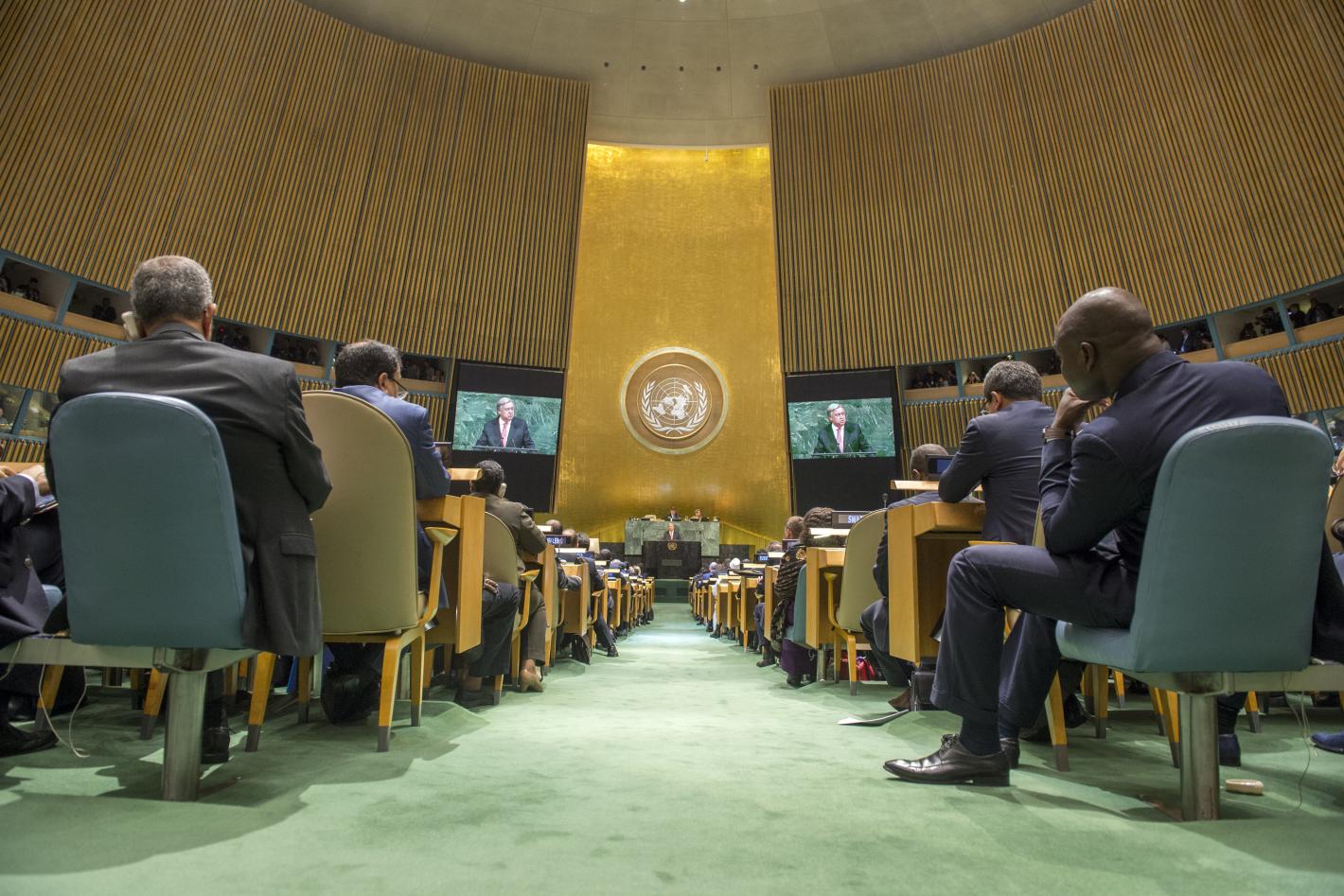 Secretary-General Presents Annual Report to General Assembly Secretary-General António Guterres (shown on screens) presents his annual report on the work of the Organization at the opening of the General Assembly’s seventy…
