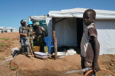 Child at Juba Protection of Civilians site during UN Police search for weapons and prohibited items on 3 June. Photo: UNMISS/Ilya Medvedev