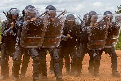 Nepalese Formed Police Unit demonstrating riot control techniques during training in Juba on 7 May 2015. Photo: UNMISS/JC McIlwaine