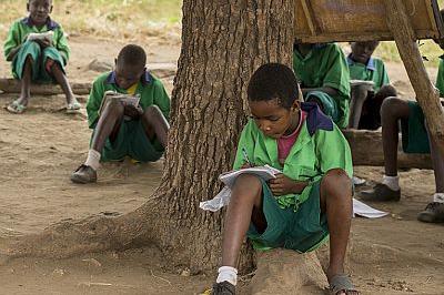 Children studying under tree at Kapuri Primary School, Central Equatoria State, where UNMISS Rwandese Battalion is building new school with local community. Photo: UNMISS/JC McIlwaine.