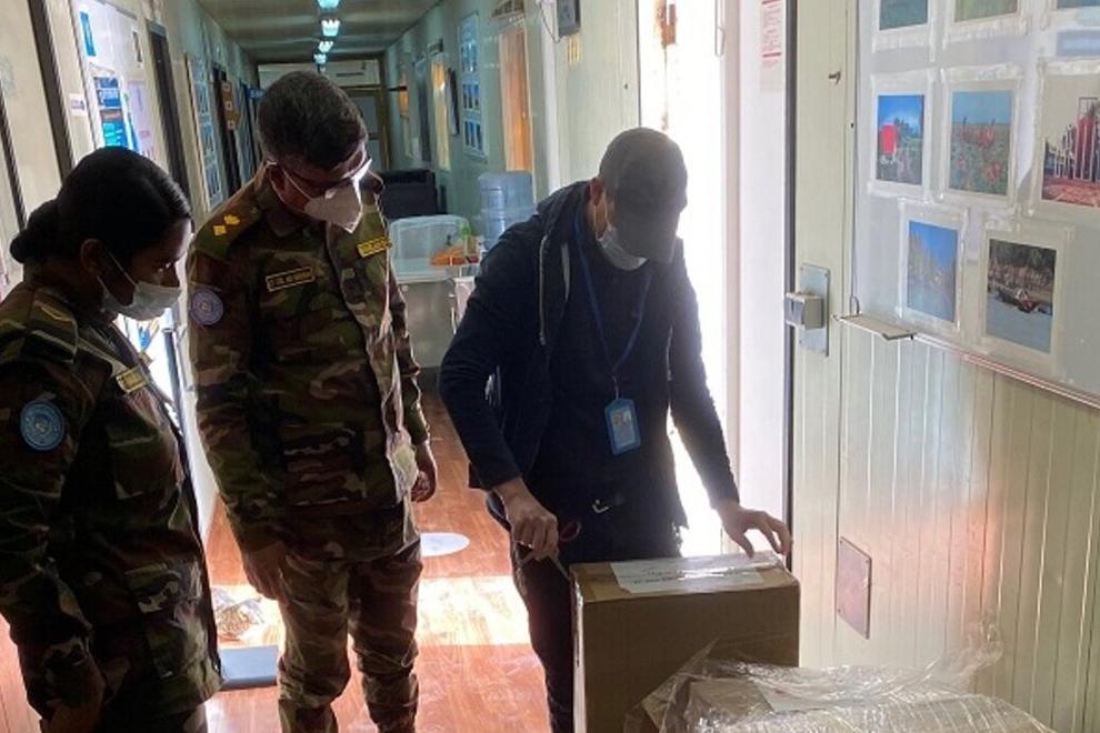 “The fight against Covid: MINURSO’s Bangladeshi Military Unit receives new medical equipment in Laayoune including high flow disposable respiratory masks and rapid covid test kits for distribution to the Mission’s Team Sites…